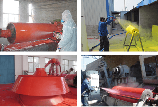 采用聚脲專(zhuān)用的高溫、高壓噴涂設(shè)備噴涂